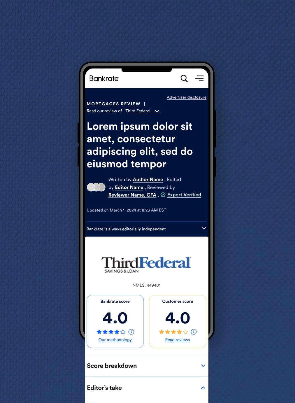 Redesigning a lender review experience to put user trust above business convenience.