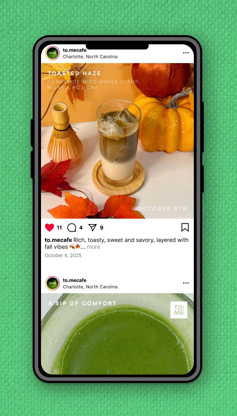 The social presence was built as an extension of the brand, not a broadcast channel. Every post was an opportunity to deepen the story — seasonal drinks framed as small rituals, community moments treated with the same care as product shots, and a visual rhythm that made the grid feel like a place you'd want to spend time.