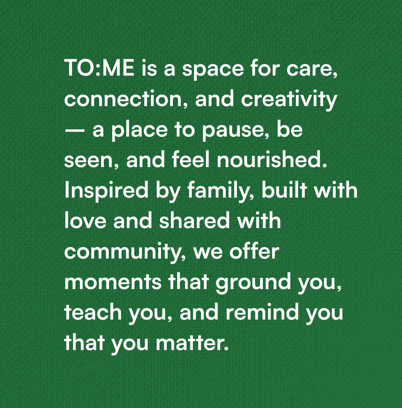 TO:ME started as a dream my girlfriend has carried for years — a café rooted in her love of matcha, her background in the food industry, and her belief that a great drink is never just a drink. It's a moment. A reason to pause. A way to feel seen.